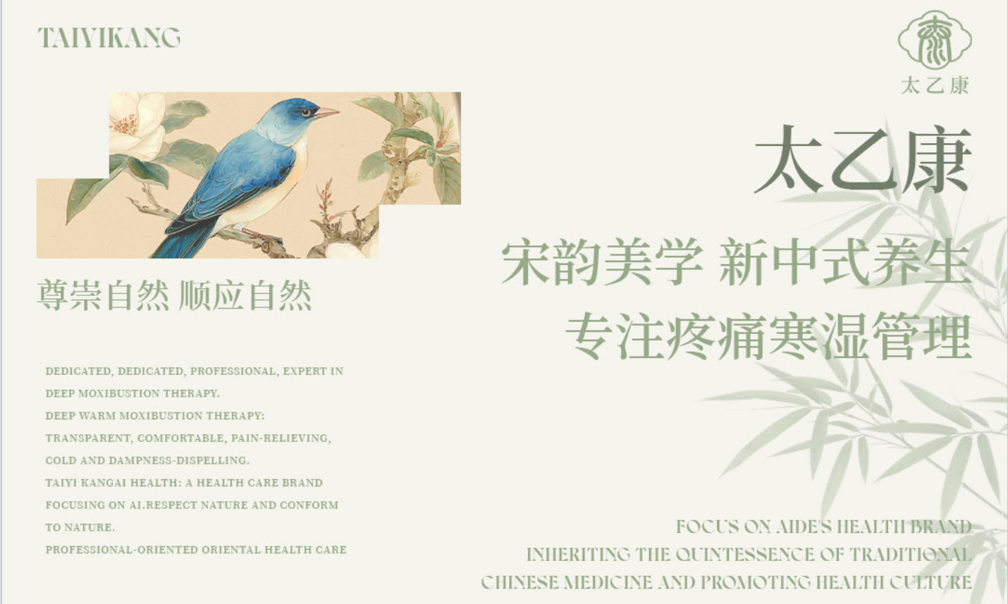《黄帝内经》有云:“经脉流行不止、环周不休,寒气入经而稽迟.....客于脉中则气不通,故卒然而痛”,遂有通则不痛、不通则痛之理;又言“经脉者,所以能决死生,处百病,调虚实,不可不通”。快节奏的现代生活里,淤堵、寒湿等问题,已成为人们亚健康状态的常见因素。太乙康深耕中医养生文化沃土,传承经典养生技法精髓,秉持“崇尚自然、顺应自然”的原则,聚焦消疼痛、祛寒湿,以“通、排、补、养”的养生理念,研发系列草本产品,独创“深层温灸疗法”,凭借专业的品质和服务效果,深受加盟商与终端消费者的认可,成为新中式养生领域的优选品牌。